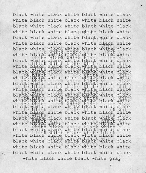 A note with the words black and white all over it, which create a spiral in the center of the page. It is a reference to the tale "black white black white black white black white black white gray".