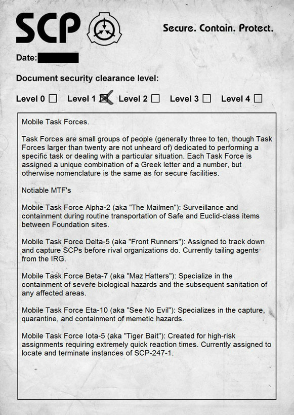 The original "Notable MTFs" document. Includes a mentions of a MTF that is dedicated to capturing SCP-247 instances.