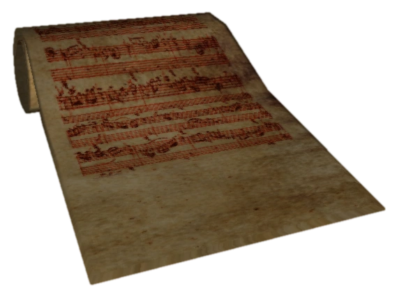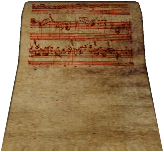 SCP-012 is an old musical score entitled "On Mount Golgotha". The object appears to be part of a set of sheet music, and is incomplete. The dark red ink, originally thought to be berry dye, was later revealed to be blood from multiple subjects. The song itself is a cacophony, lacking correlation and harmony between instruments.