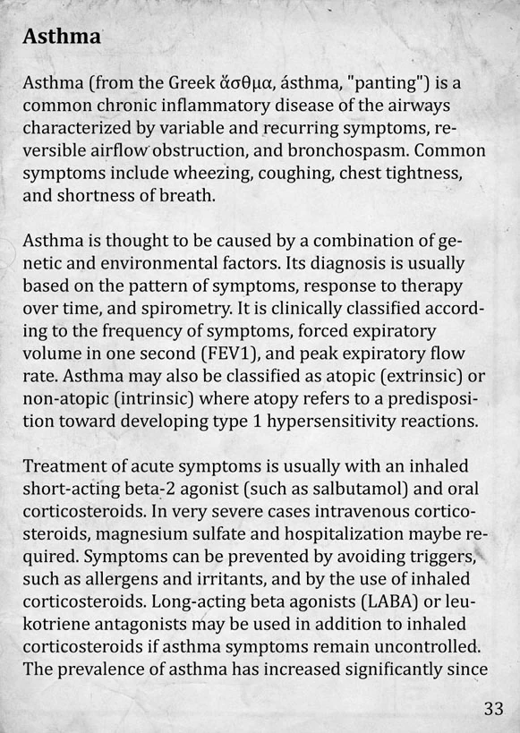 - Asthma: Coughing at intervals proportional to the player's remaining stamina; lowers the player's speed proportional to the player's remaining stamina.