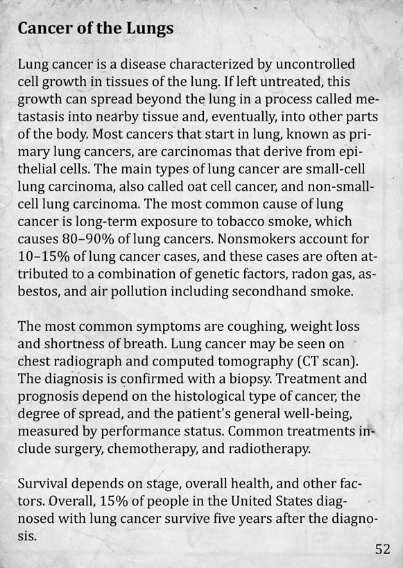 There are a number of ways to negate SCP-1025's effects; an upgraded Gas Mask can negate the effects of lung cancer and the common cold, but not cure them. SCP-500 is capable of curing all symptoms. If the player is wearing SCP-714, then they won't develop any of the symptoms. However, applying the ring after reading the page will not cure the effects or prevent them from happening.