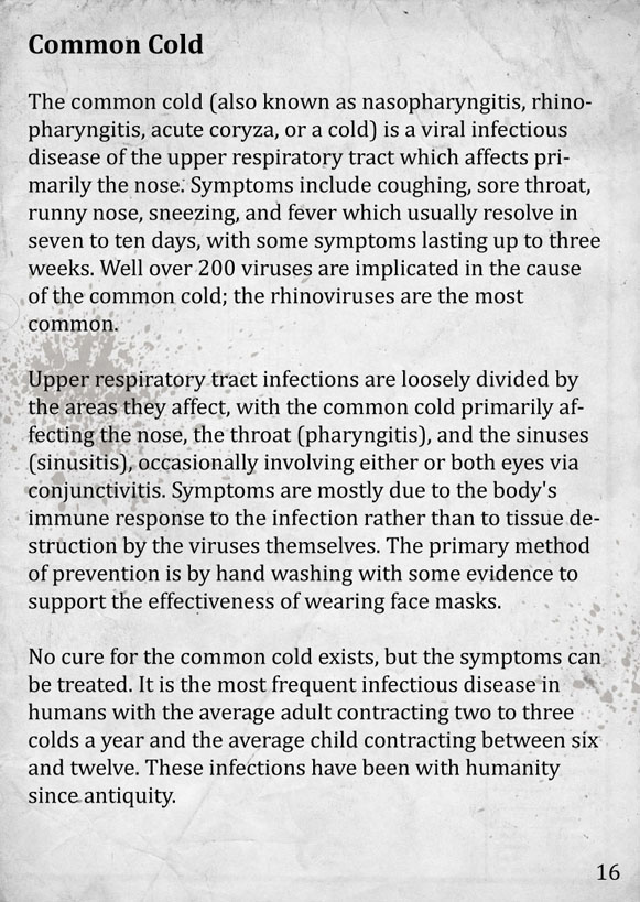 - Common Cold: Coughing at random intervals; significantly lower the rate of stamina regeneration