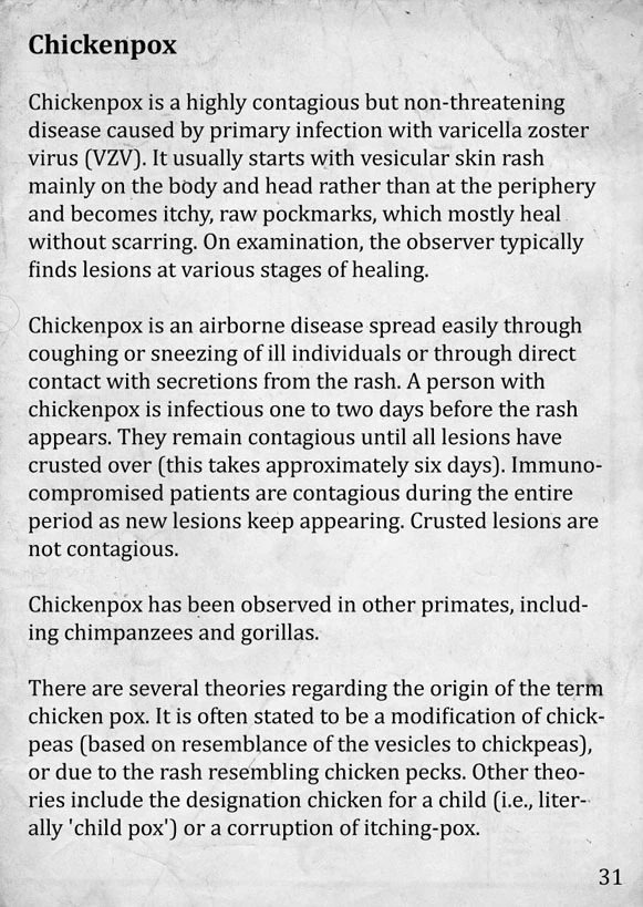 - Chickenpox: The message "Your skin is feeling itchy" is displayed at random intervals.
